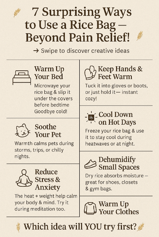 Our handmade products are perfect for soothing relief — microwavable or freezer-safe for hot or cold comfort. Always test the temperature before use, and spot clean with a damp cloth — never submerge in water.